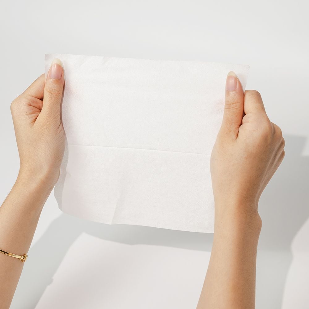 - Không để lại xơ bông, sử dụng nguồn nguyên liệu 100% vải không dệt/ Non-woven Fabric (30% Viscose, 70% Polyester).