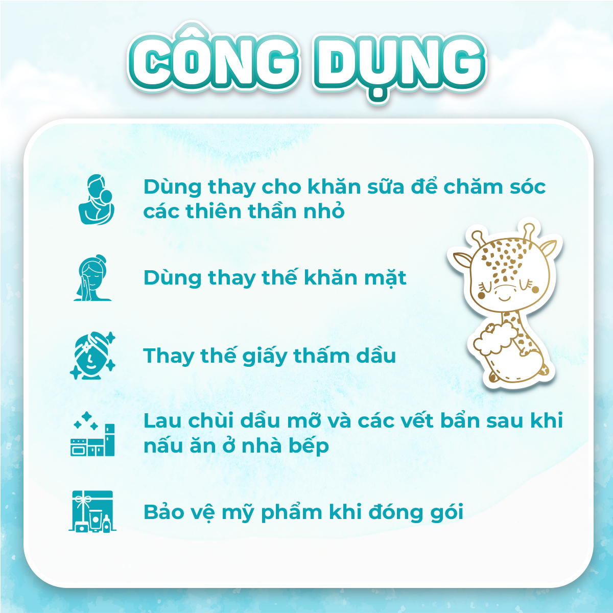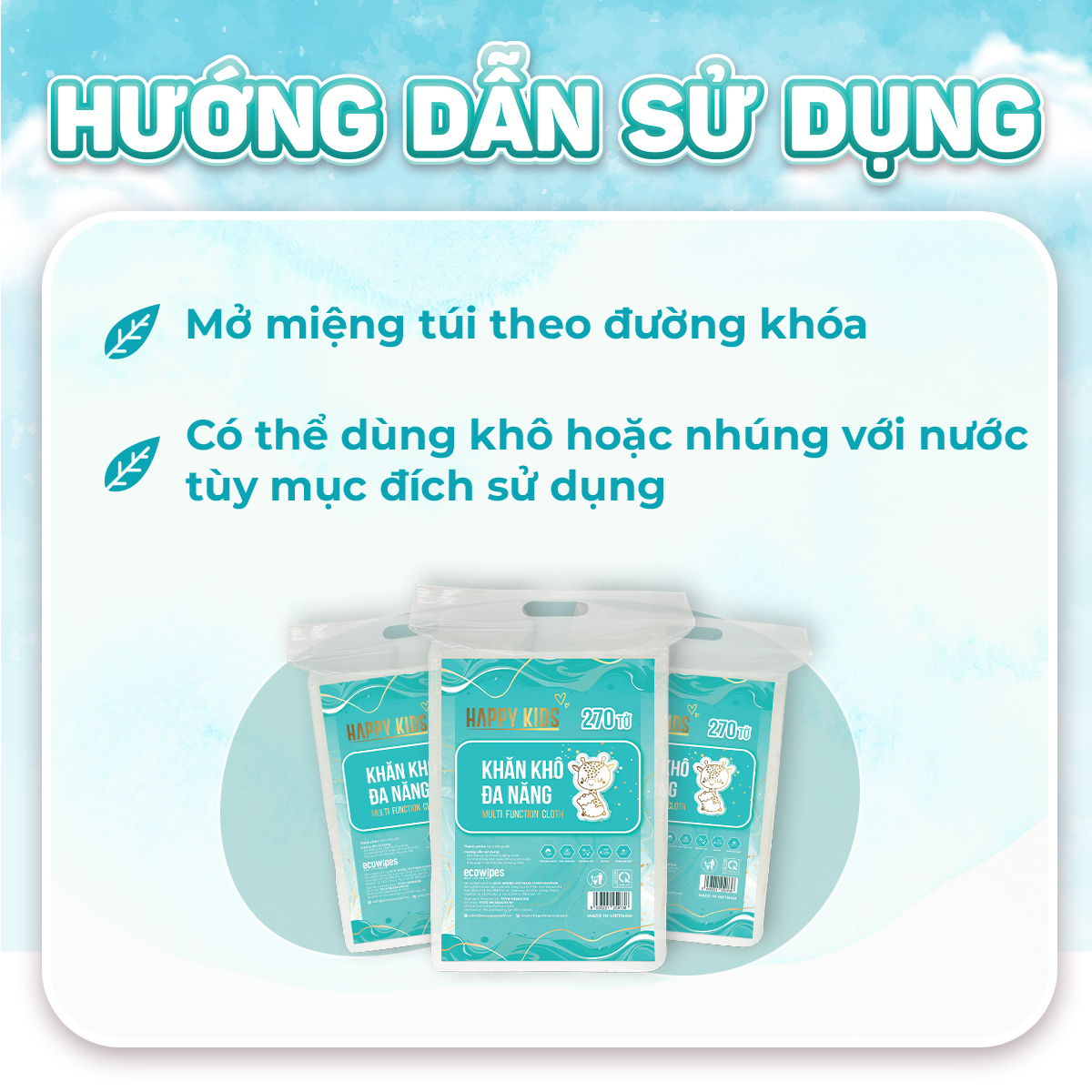 ✔️An toàn sử dụng cho em bé: lau mặt, lau miệng khi bé ăn, lau tay chân, lau khi thay tã hoặc tắm cho bé,...