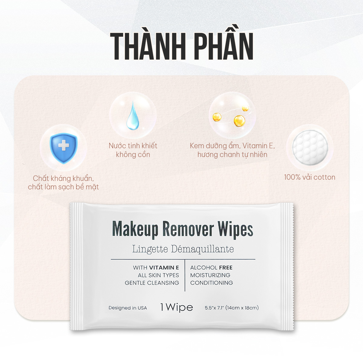 Dù là cuối ngày bận rộn hay trong những chuyến đi xa, làn da bạn vẫn luôn xứng đáng được nâng niu một cách dịu dàng. Khăn ướt tẩy trang Makeup Remover Wipes 1 tờ mang đến giải pháp làm sạch nhanh chóng, an toàn, giúp lấy đi lớp trang điểm chỉ trong một bước, đồng thời giữ lại cảm giác mềm mại, ẩm mượt cho làn da.