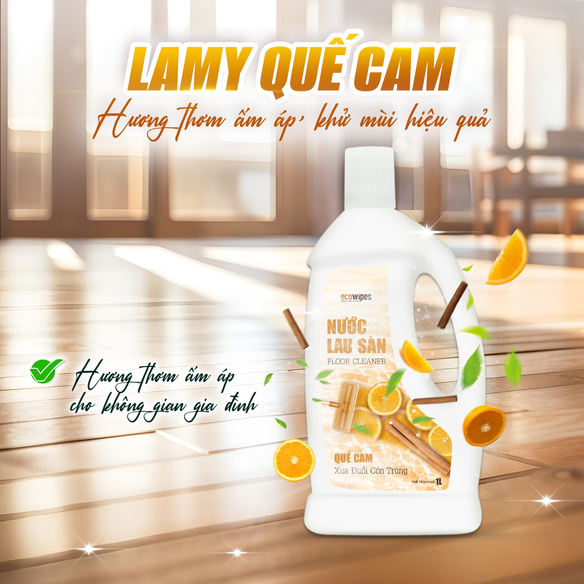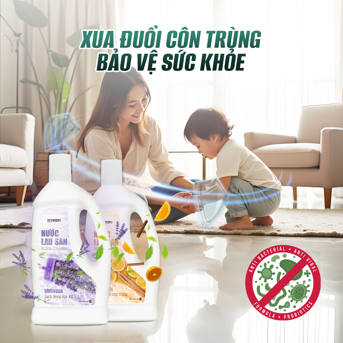 Không chỉ giúp đánh bay mọi vết bẩn, Nước lau sàn EcoWipes còn tạo nên lớp bảo vệ vô hình giúp ngăn ngừa vi khuẩn, đồng thời mang lại hương thơm dịu nhẹ, dễ chịu suốt cả ngày. Đây chính là sản phẩm làm sạch mà gia đình bạn luôn cần, đảm bảo hiệu quả vượt trội mà vẫn an toàn cho sức khỏe.